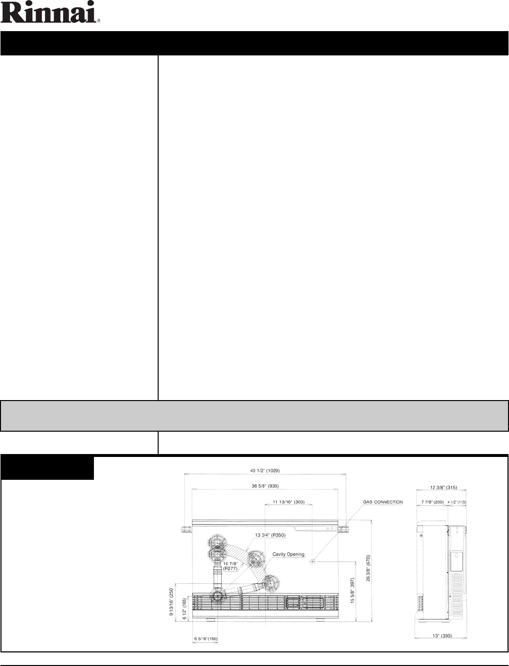 Rinnai is continually updating and improving products; therefore, specifications are subject to change without prior