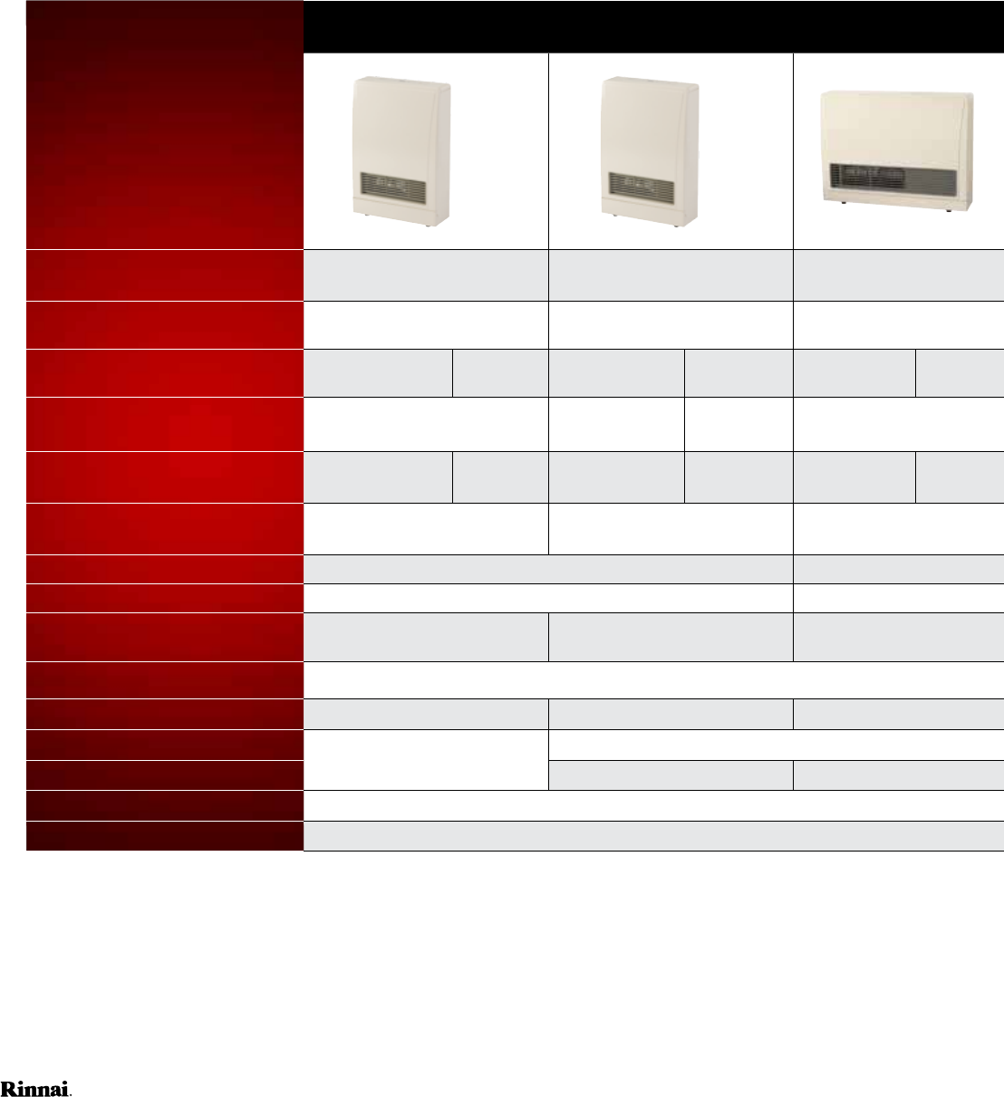 NOTE: Rinnai Vent-Free Fan Convectors are intended for supplemental heating only according to the International Fuel Gas Code (IFGC) and