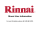 Rinnai User Information For user information, please call 1-800-621-9419.