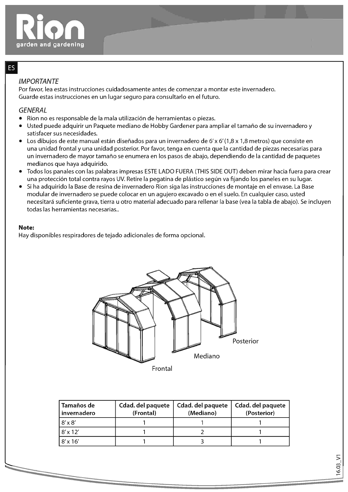 Por favor, lea estas instrucciones cuidadosamente antes de comenzar a montar este invernadero.