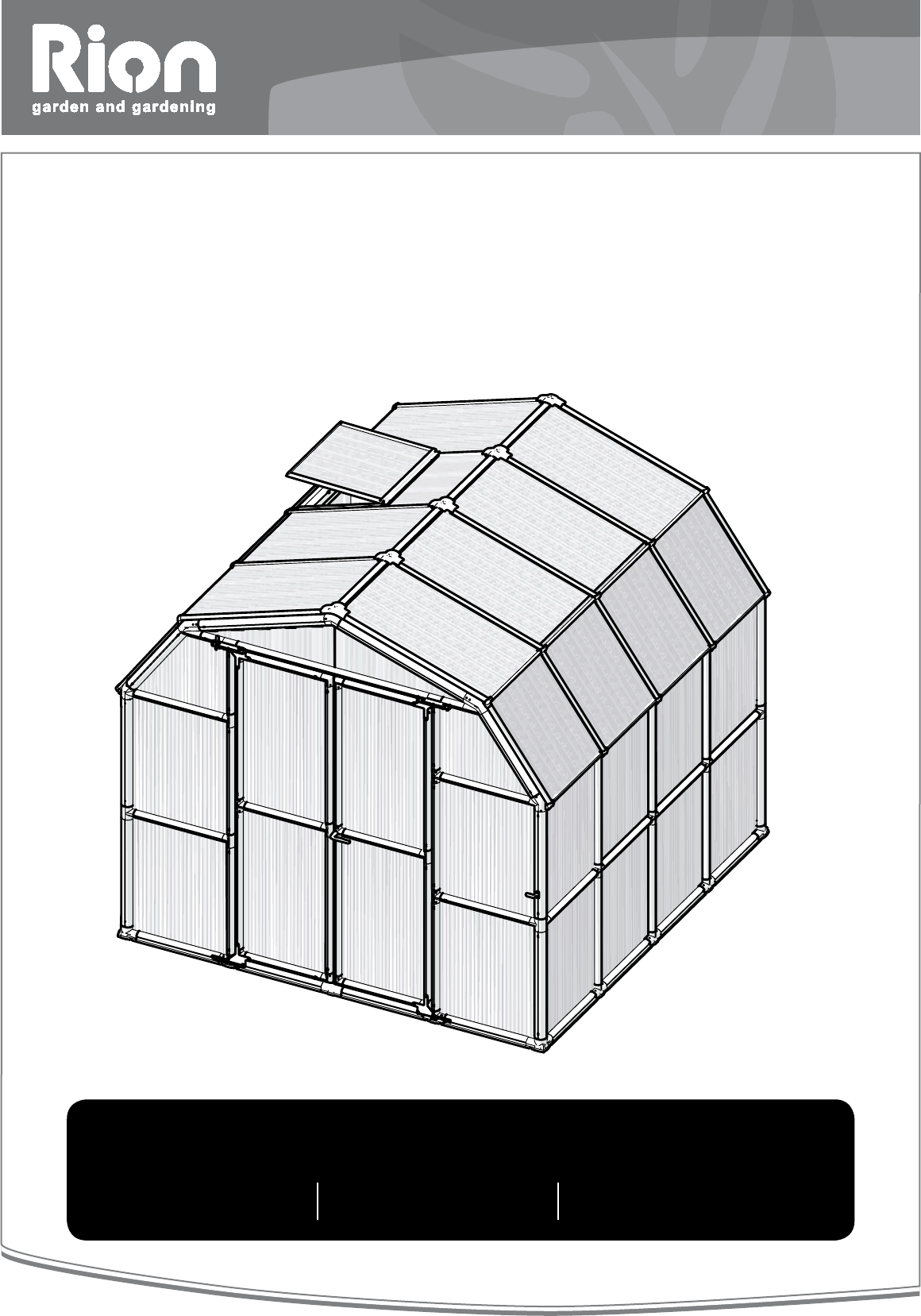 garden and gardening FR IMPORTANT Veuillez lire attentivement ces instructions avant de commencer a monter Gardez ces instructions dans un endroit sur pourune future reference. la serre. GENERALITES Rion n'est pas responsable de la mauvaise utilisation des outils ou des pieces. Vous pouvez acheter d'autres packs de Solarium Moyen pour etendre la taille de la serre et repondre ainsi a vos besoins.