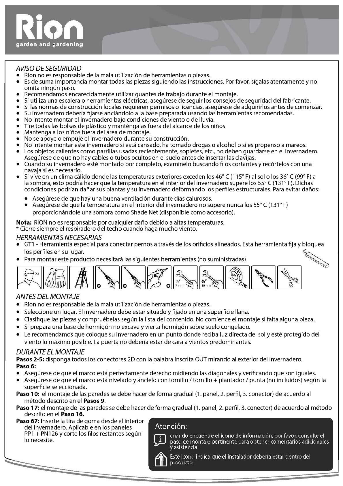Note: RION no es responsable por cualquier dano debido a altas temperaturas.