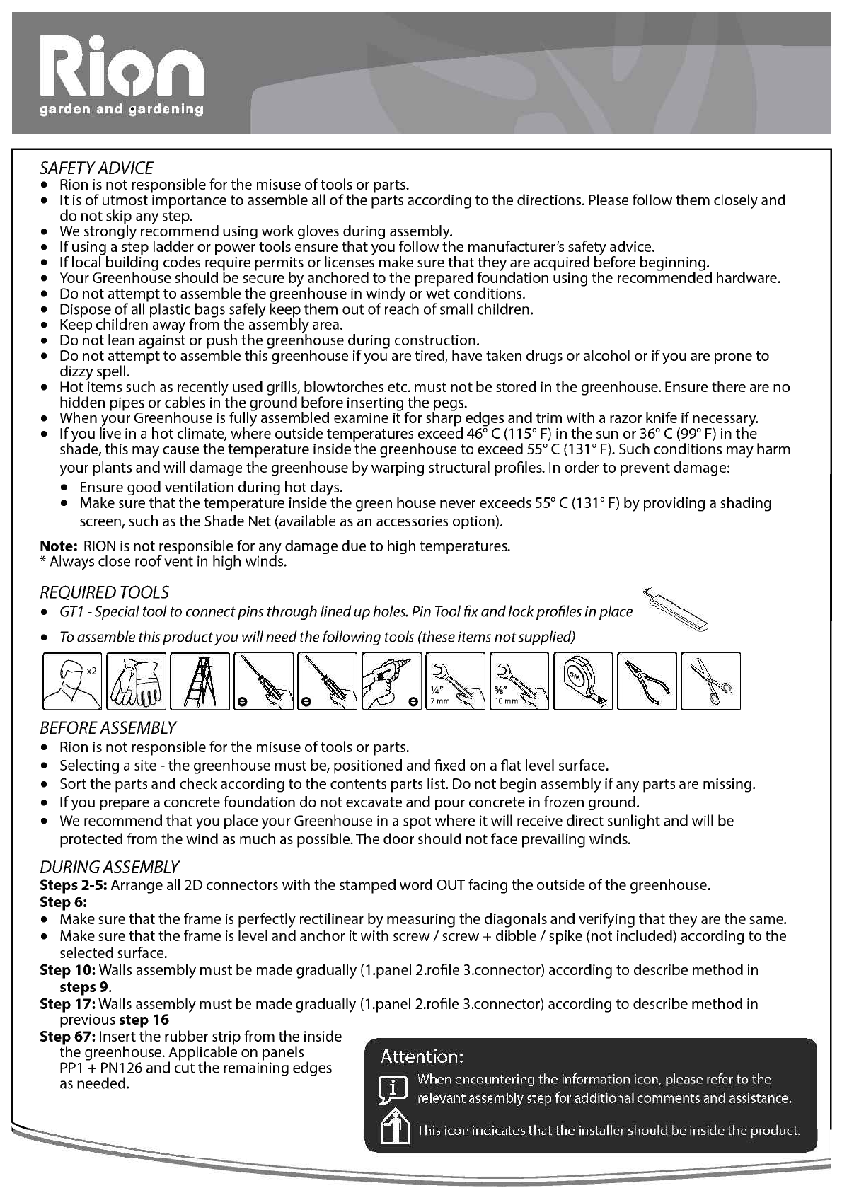 Do not attempt to assemble this greenhouse if you are tired, have taken drugs or alcohol or if you are prone to