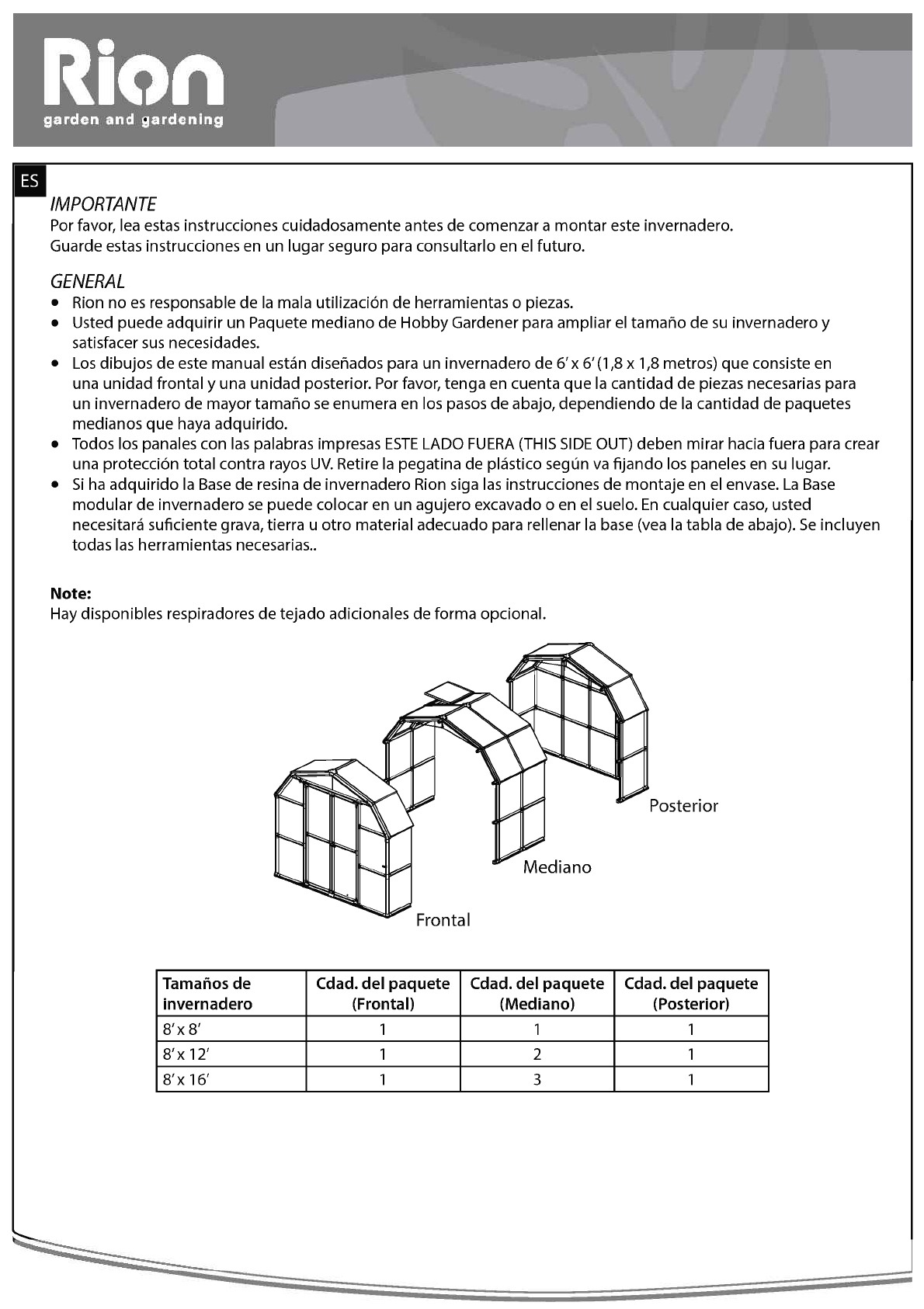 Por favor, lea estas instrucciones cuidadosamente antes de comenzar a montar este invernadero.