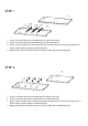 STEP 5 1. Screw 6 cam bolts (A) into pre-threaded holes on top board (1). STEP 6 1. Attached top board (1) to pre-assembled left side panel (2), right side panel (3) and middle panel (14) by inserting cam bolts (A) into cam lock holes on the left side panel (2), right side panel (3) and middle panel (14). 2. Insert 6 cam locks (B) into cam lock holes on left side panel (2), right side panel (3) and middle panel (14), then rotate clockwise to secure cam bolts (A) in place.