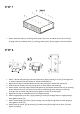 STEP 1 1. Screw 2 cam bolts (A) into pre-threaded holes on right side panel (3). 2. Screw 4 cam bolts (A) into pre-threaded holes on left side panel (2). 3. Attach 1 drawer holder (E) to left side panel (2) by inserting 2 wood screws (D) through holes on drawer holder (E) then tighten to left side panel (2). 4. Repeat step 3 above to assemble another 2 drawer holders (E) to left side panel (2). STEP 2 1. Screw 2 cam bolts (A) into pre-threaded holes on bottom board (5). 2.