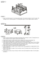 STEP 1 STEP 1 1. Screw 2 cam bolts (A) into pre-threaded holes on right side panel (3). 2. Screw 4 cam bolts (A) into pre-threaded holes on left side panel (2). 3. Attach 1 drawer holder (E) to left side panel (2) by inserting 2 wood screws (D) through holes on drawer holder (E) then tighten to left side panel (2). 4. Repeat step 3 above to assemble another 2 drawer holders (E) to left side panel (2). STEP 2 STEP 2 1. Screw 2 cam bolts (A) into pre-threaded holes on bottom board (5). 2.