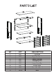 1 4 9 3 5 10 2 6 11 7 8 NO 1 2 3 4 5 6 7 8 9 10 11 QTY 1PC 1PC 1PC 1PC 1PC 1PC 1PC 1PC 1PC 1PC 2PCS DESCRIPTION Top Board Left Side Panel Right Side Panel Upper Cross Bar Adjustable Shelf Shelf Lower Cross Bar Bottom Shelf Upper Back Board Lower Back Board Door 11