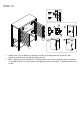 STEP 10 E G G G×2 c G×2 G×2 a a b 11 b c 11 1. 2. Attach doors (11) to cabinet by inserting 8 screws (G) through holes on hinges (E), then tighten to left side panel (2) and right side panel (3). Note: Tightening screw in position “a” will adjust doors up or down; tightening screw in position “b” will adjust doors to or from cabinet, and tightening screw in position “c” will adjust doors side to side.