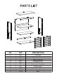1 4 9 3 5 10 2 6 11 7 8 NO 1 2 3 4 5 6 7 8 9 10 11 QTY 1PC 1PC 1PC 1PC 1PC 1PC 1PC 1PC 1PC 1PC 2PCS DESCRIPTION Top Board Left Side Panel Right Side Panel Upper Cross Bar Adjustable Shelf Shelf Rear Lower Cross Bar Bottom Board Upper Back Board Lower Back Board Door 11
