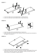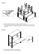 STEP 1 A A A A A A A A 2 3 1. Insert 4 cam bolts (A) into pre-threaded holes on left side panel (2). 2. Insert 4 cam bolts (A) into pre-threaded holes on right side panel (3). STEP 2 I L A A A I L I L A 1 1. Insert 4 cam bolts (A) into pre-threaded holes on top board (1). 2. Attach 2 brackets (L) to top board (1) by inserting 2 screws (I) through holes on brackets (L), then tighten to top board (1). STEP 3 8 C C 7 F F 1. Insert 2 wood dowels (C) into wood dowel holes on bottom board (8).