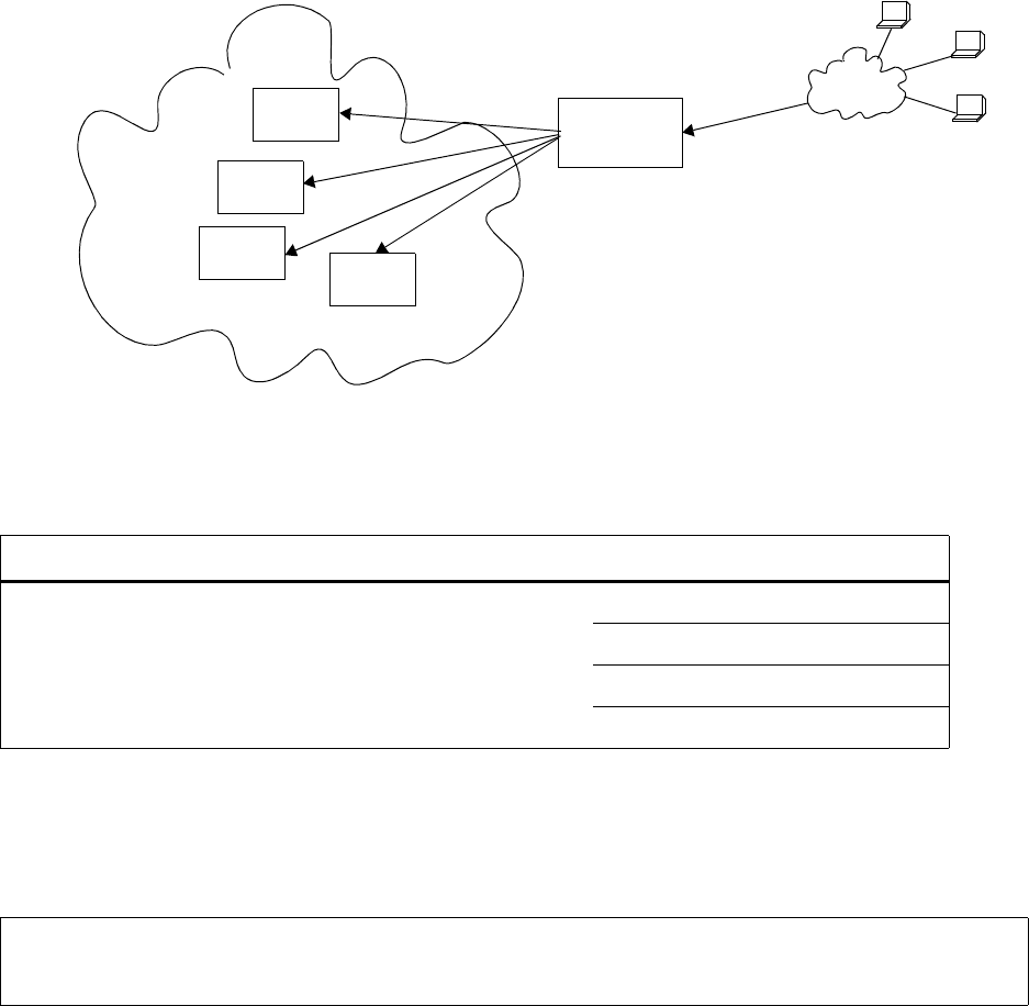 administrator configures the networks so that the RS forwards web requests among four separate servers, as shown