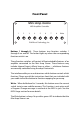 Front Panel Mini Amp Gizmo MIDI Amplifier Controller 1 2 3 4 5 6 7 8 Write RJM Music Technology, Inc. Buttons 1 through 8 - These buttons turn function switches 1 through 8 on and off. The button lights up when the corresponding function switch is on. These function switches will control all footswitchable features of an amplifier connected to the Mini Amp Gizmo.