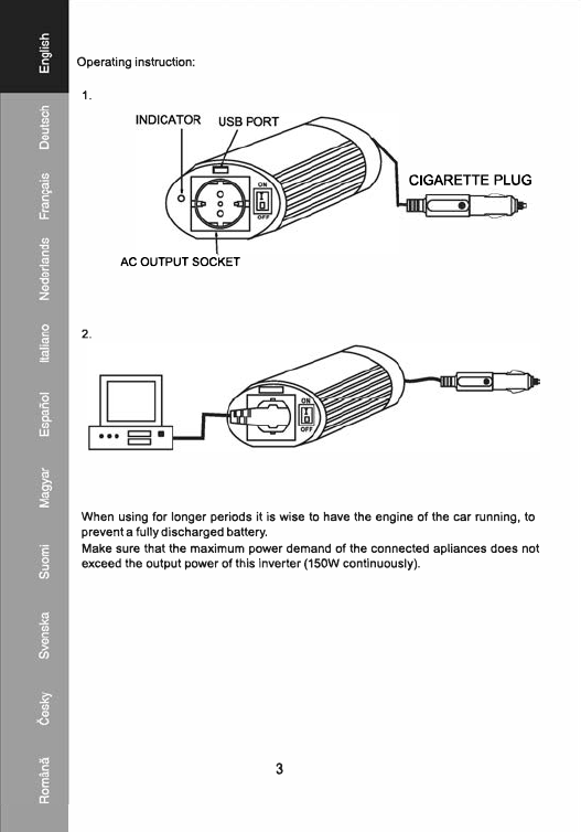 DC/AC Inverter 12V 150W Schuko