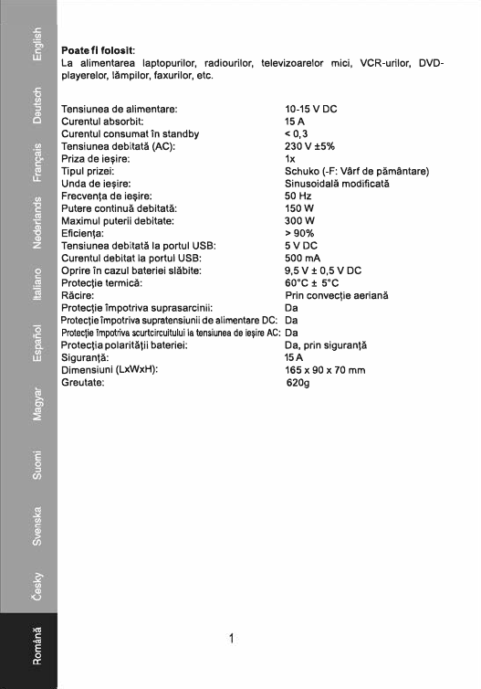 DC/AC Inverter 12V 150W Schuko