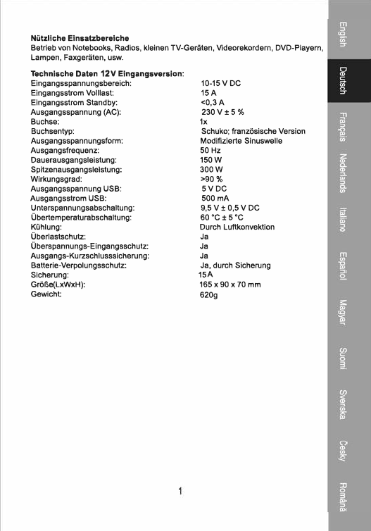 DC/AC Inverter 12V 150W Schuko