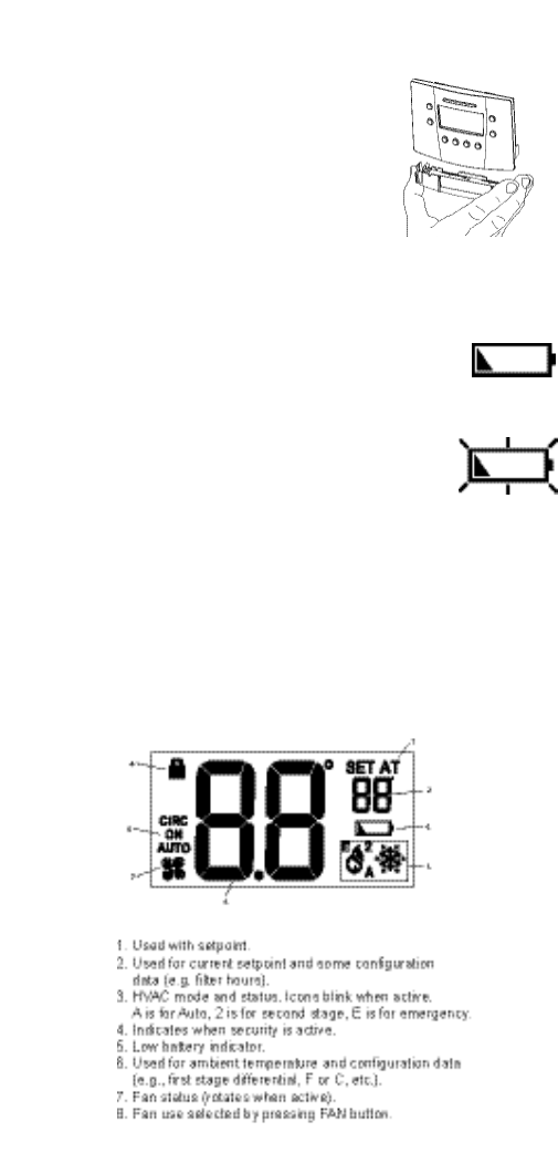Replace batteries if leaving thermostat unattended for more than 30 days.