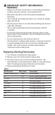 IMPORTANT SAFETY INFORMATION WARNING: • Always turn off power at main fuse or circuit breaker panel before installing, removing, cleaning, or servicing thermostat. • Read all the information in this manual before installing this thermostat. • This is a 24V AC low-voltage thermostat. Do not install on voltages higher than 30V AC. • All wiring must conform to local and national building and electrical codes and ordinances. • This is a dual powered thermostat that will operate on 24V AC or batteries.
