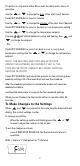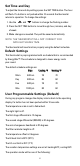 Set Time and Day To adjust the time and day settings press the SET TIME button. The hour will flash. If a button is not pushed within 10 seconds the thermostat returns to operation. To change the settings: 1. Use the and buttons to change the flashing number. 2. Press the SET TIME button to move through hour, minutes, and day of week. 3. Make changes as needed. They will be saved automatically. NOTE: THE THERMOSTAT WILL NOT CORRECT FOR DAYLIGHT SAVING TIME.