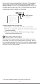 Schéma de câblage Utilisation en mode de pompe à chaleur avec valve à inversion activée en climatisation avec piles Transformateur Retirez le cavalier s’ilexiste un transformateur de climatisation séparé Non utilisé avec RS 4110, RS5110 et RS6110 24 Volts c.a. Chargé 120 c.a. Relais de ventilateur G Valve à inversion O Contacteur du compresseur Y1 RH/R RC C L B Sortie d’erreur du compresseur (24 V c.a.