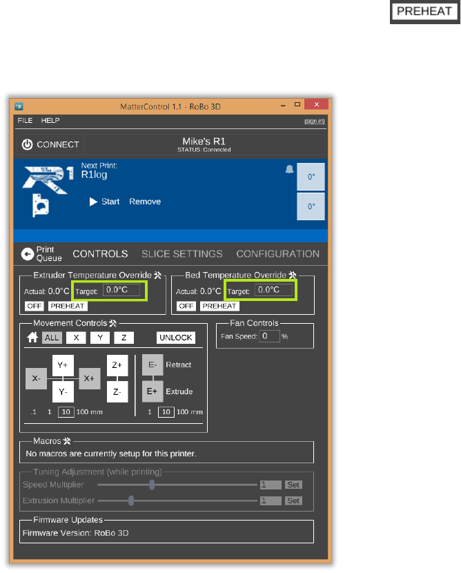 button to heat up these things while you set your slice settings.