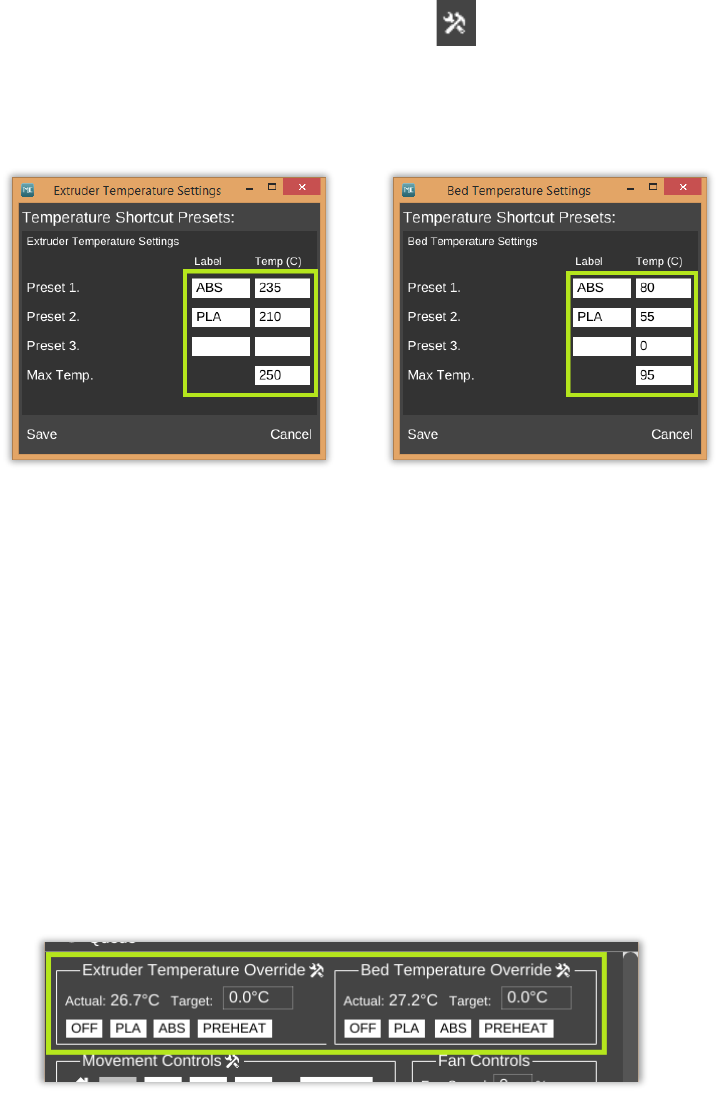 Temperature Override” or “Bed Temperature Override”. You will see a screen