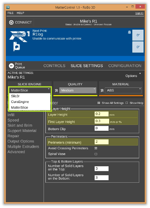 MatterControl comes with 3 different slice engines included: Slic3r, Cura, and MatterSlice. You