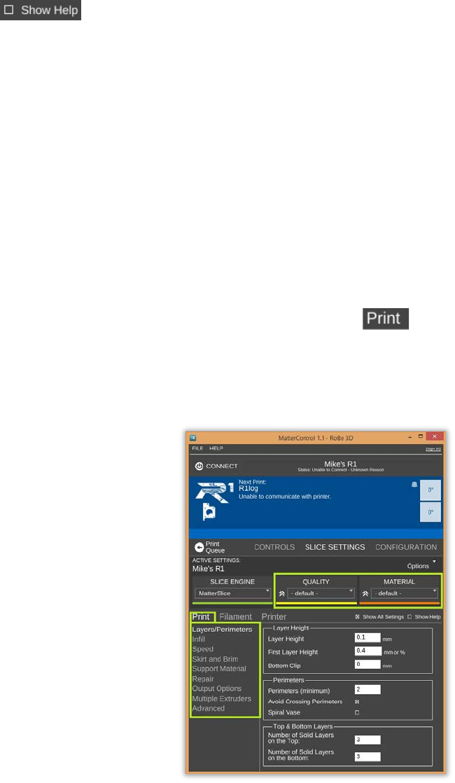 Underneath the Slice Engine Drop down list, Click the tab and you will see a handful of