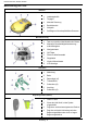 Fehlersuche Angezeigte Meldung F Vord/Hint.Stoss. lose Vord/Hint.Stoss. gedr. Wahrscheinliche Ursache/Vorfall Korrigierende/Benutzeraktion - Interner Stoßdämpferfehler - Kontaktieren Sie den Kundendienst - Auf den vorderen oder hinteren Stoßfänger wird ein ständiger Druck ausgeübt - Entfernen Sie den Mäher von dem Objekt, das gegen den Stoßfänger drückt.