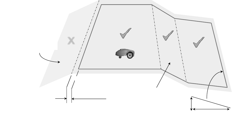 Der Begrenzungsdraht sollte nicht über einen Abhang gelegt werden, der mehr als 15cm auf 1m
