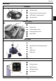 Introduction Main Parts Robomow® 4 3 2 1 Operating Lamp 2. Bumper with touch sensitive sensors 3. STOP Button / Carrying Handle 4. Operating Panel Under the Hood 1 4 2 3 1. Bumper Door 2. Mowing Height Indicator 3. Mowing Adjustment Knob 4. Safety Switch Base Station 1 2 4 3 1. Base Station Head (Charging Adaptor) 2. Base 3. Flippers (x2) 4. Stakes (x6) Power Box 1 3 2 4 1. Docking Indicator 2. ON/OFF button 3. Operating Indicator 4.