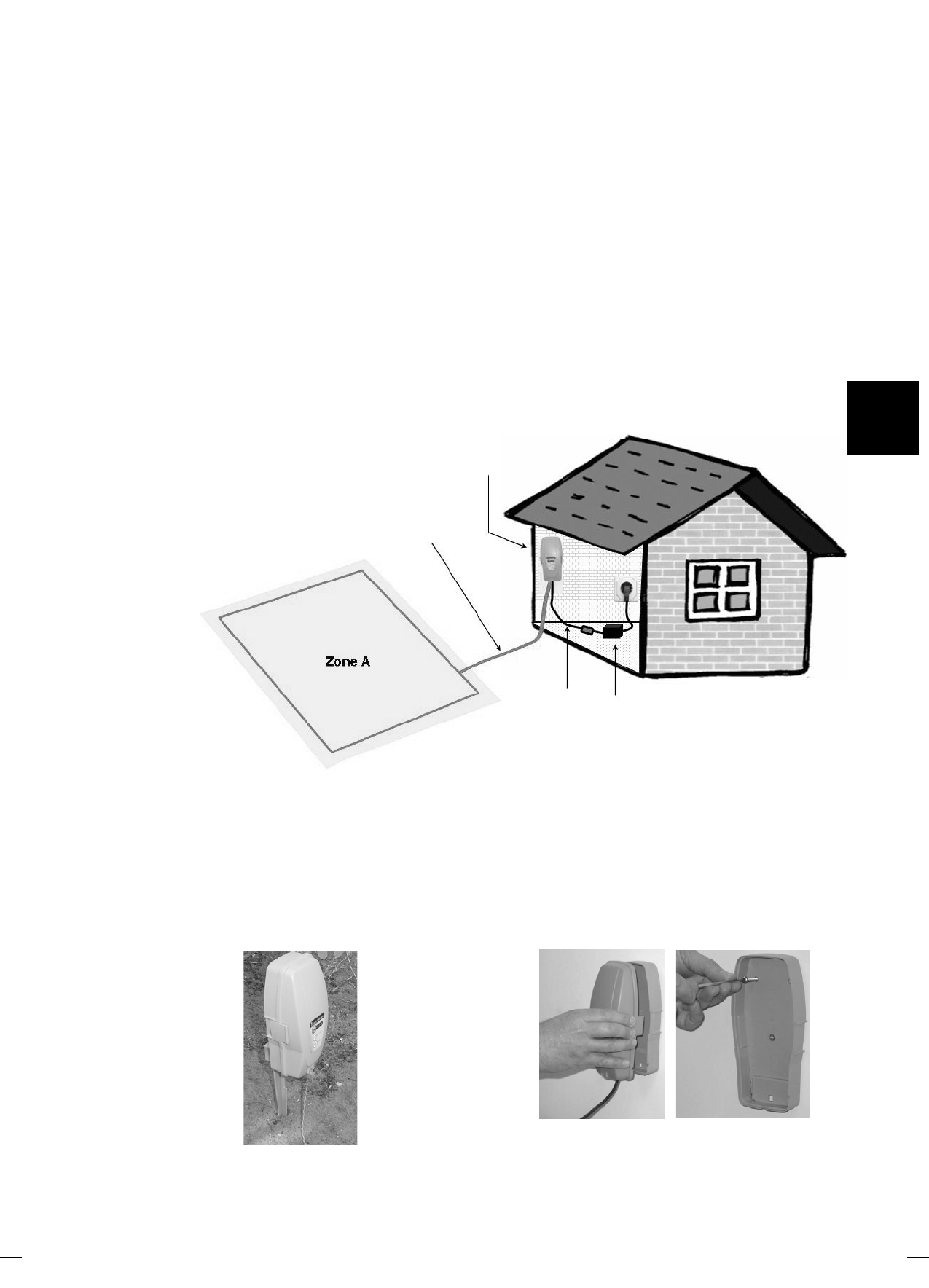 Le commutateur de périmètre est fourni avec un pieu qui se fixe à son dos, pour simplifier son