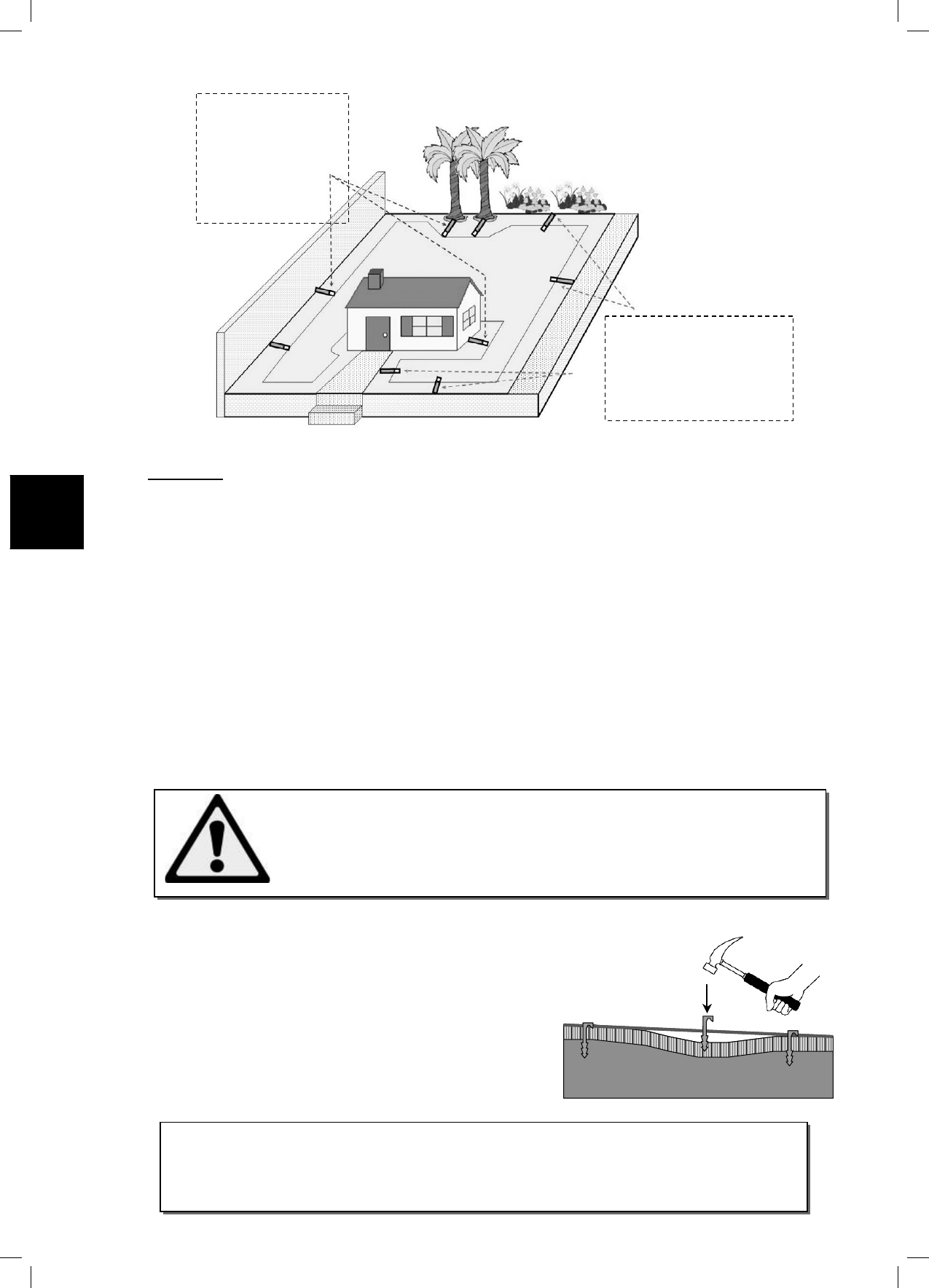 Dopo aver inserito nel terreno i pioli a martellate fino alla loro profondità di servizio, tirate il filo per