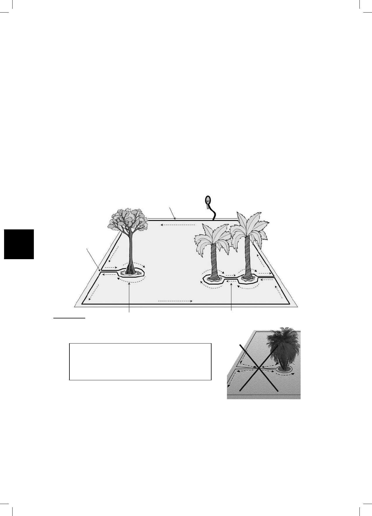 perimeter eiland. Waar deze obstakels zich dichtbij de rand van het gazon bevinden moeten