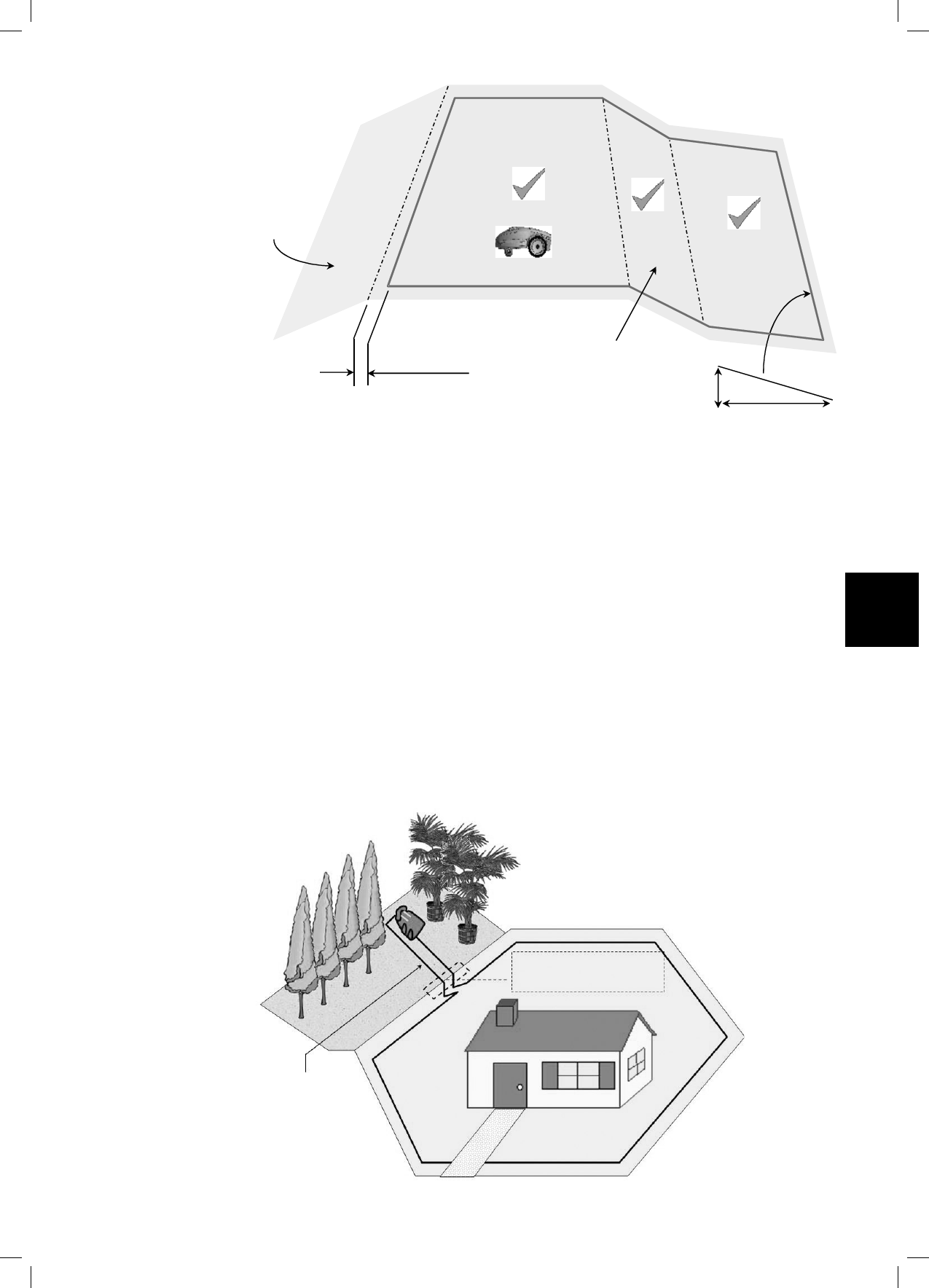 Het gebied tussen het gazon en het basisstation moet vrij zijn van obstakels en