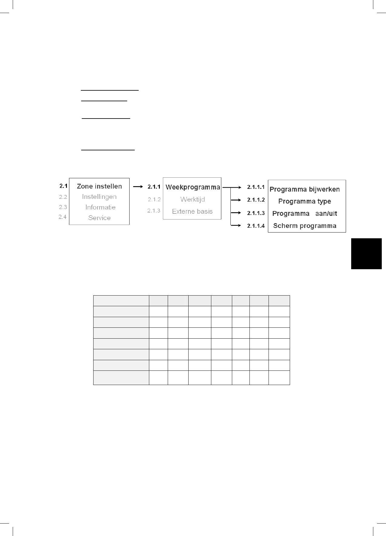 Als u het weekprogramma “per zone” instelt komen de automatisch geselecteerde actieve dagen