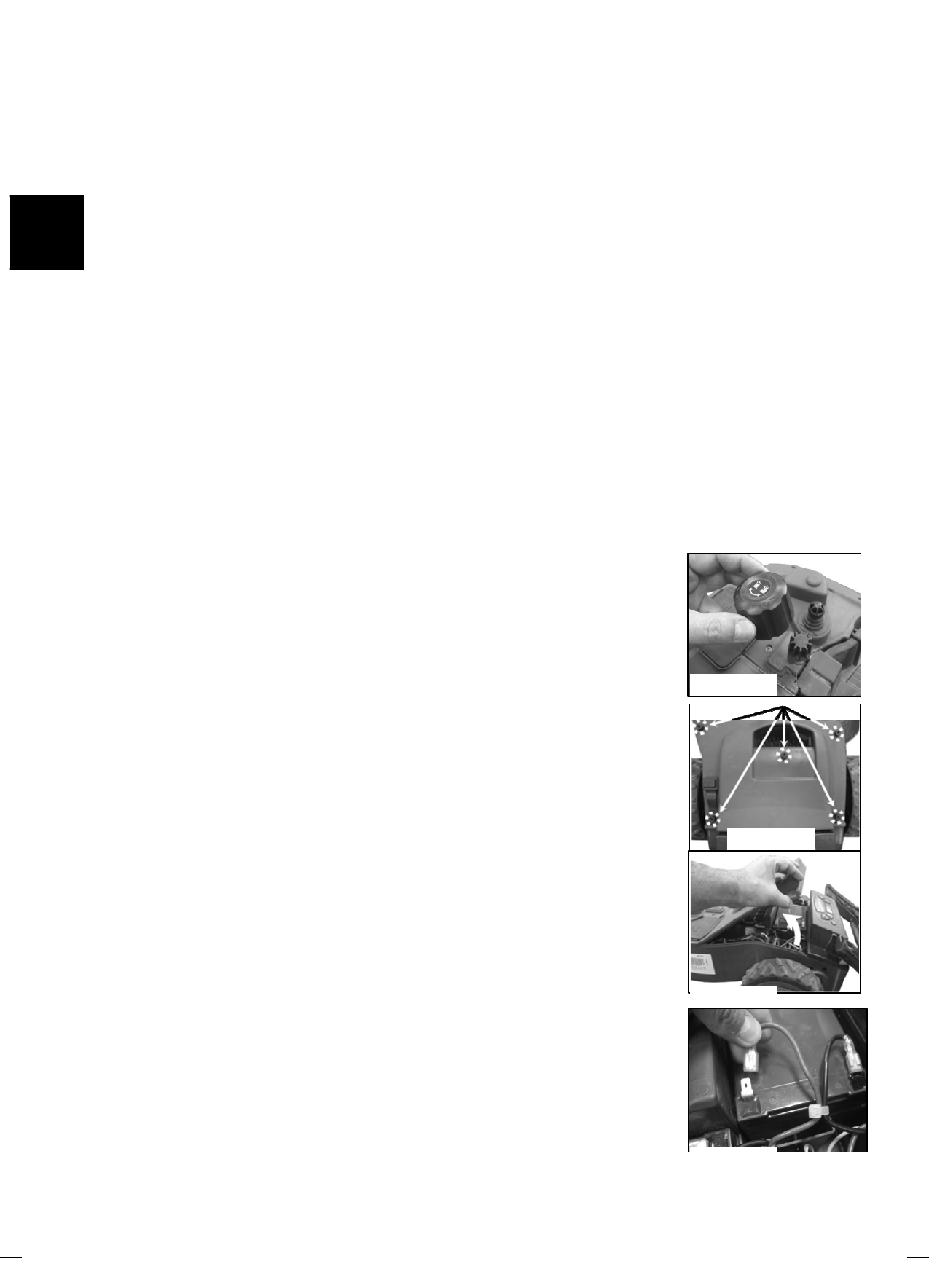 den Robomow das erste Mal einsetzen; wenn nötig, säubern Sie die Kontakte mit einem kleinen