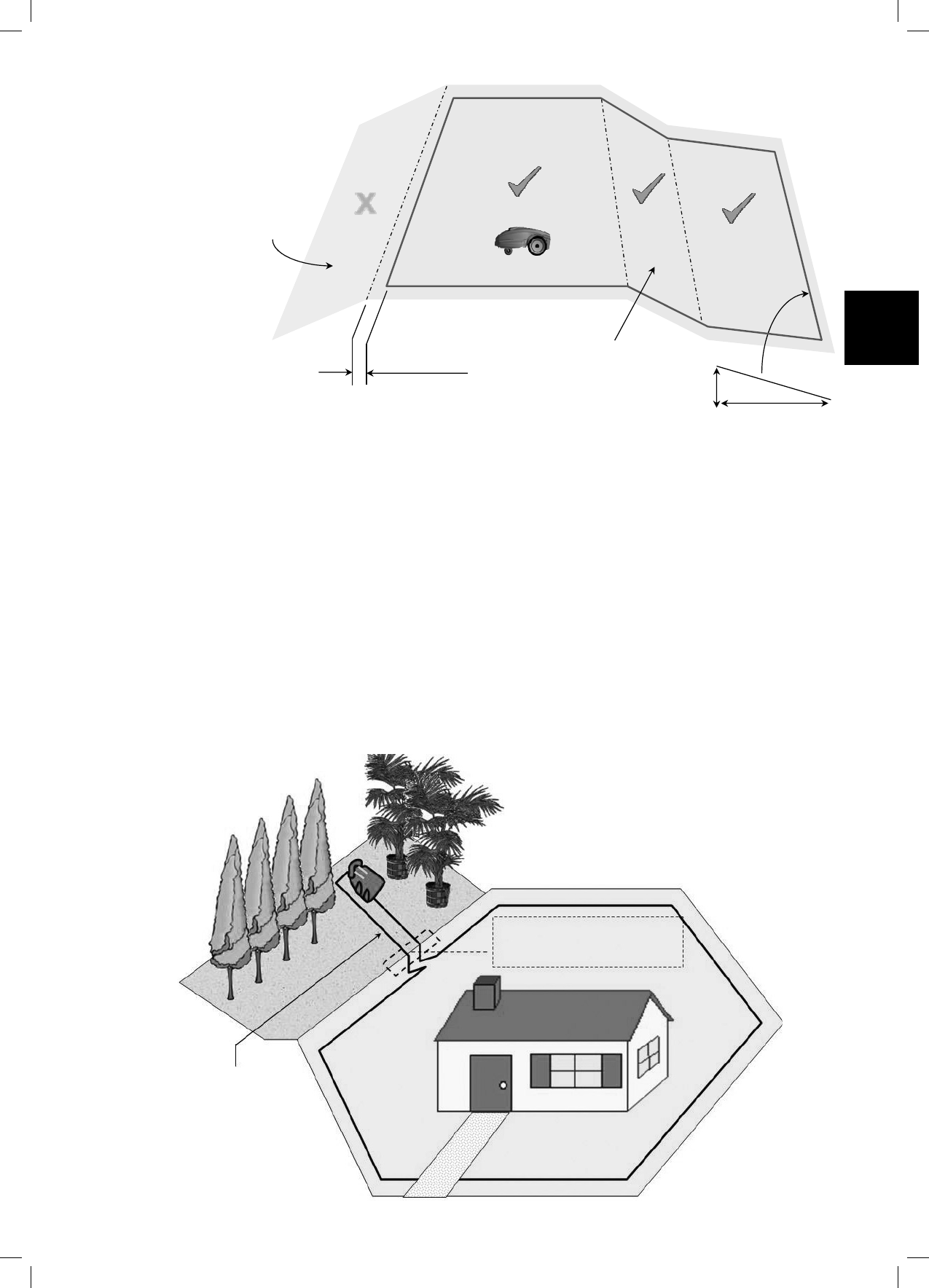 The area between the lawn and the Base Station should be clear of obstacles and objects.