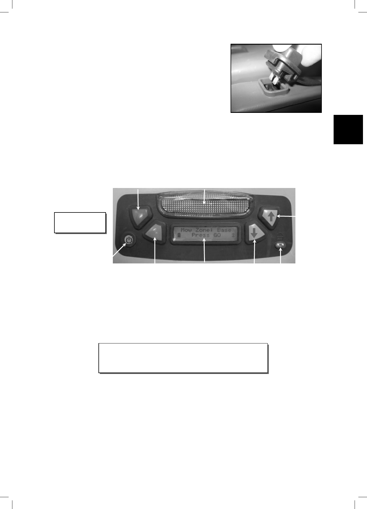 On the top of the rear side of Robomow there is a control panel. The control panel consists of a