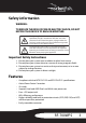 Safety information WARNING: TO REDUCE THE RISK OF FIRE OR ELECTRIC SHOCK, DO NOT EXPOSE THIS DEVICE TO RAIN OR MOISTURE. The lightning flash with arrowhead symbol, within an equilateral triangle is intended to alert the user to the presence of uninsulated dangerous voltage within the product’s enclosure that may be of sufficient magnitude to constitute a risk of electric shock.