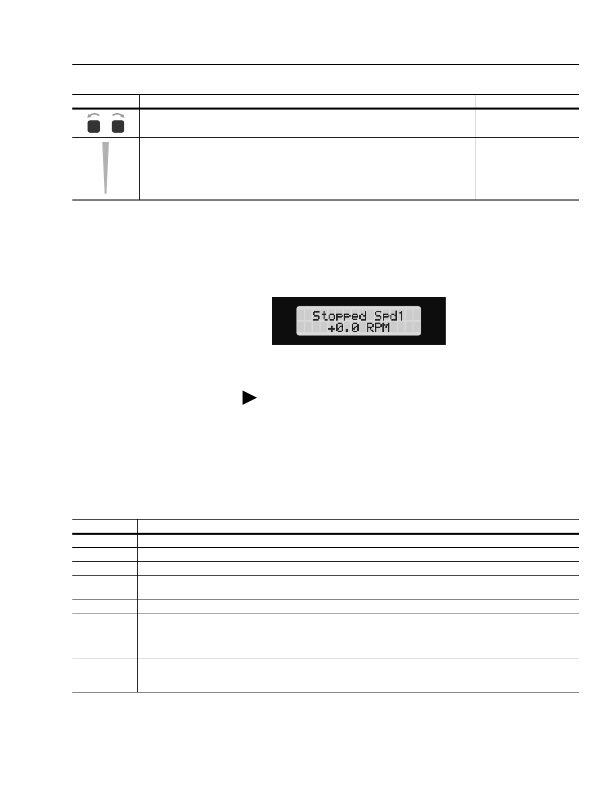 The display shows the current status of the drive (such as Stopped or