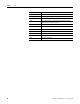 Powermonitor 3000 Data Tables Appendix A Harmonic Results; Even Harmonics 42…62 Parameters CSP File No. F49 Remote I/O BT 46 CIP Assy. Inst. 61 No. of Elements 14 User Configurable No Data Type Floating Point Data Access Read Only PM3000 Type M8 only Harmonic Results; Even Harmonics 42…62 Element No. Modbus Address Element Name Range Comment 0 - Channel # returned 1…7 1 - Type of harmonic data returned 0…1 Refer to Reading Individual Harmonic Values on page 173.