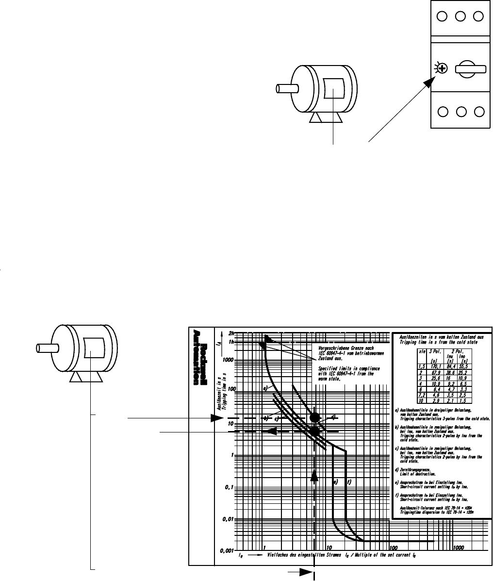 2) - Make sure that t of motor is longer than the release time t of the circuit breaker at the locked motor
