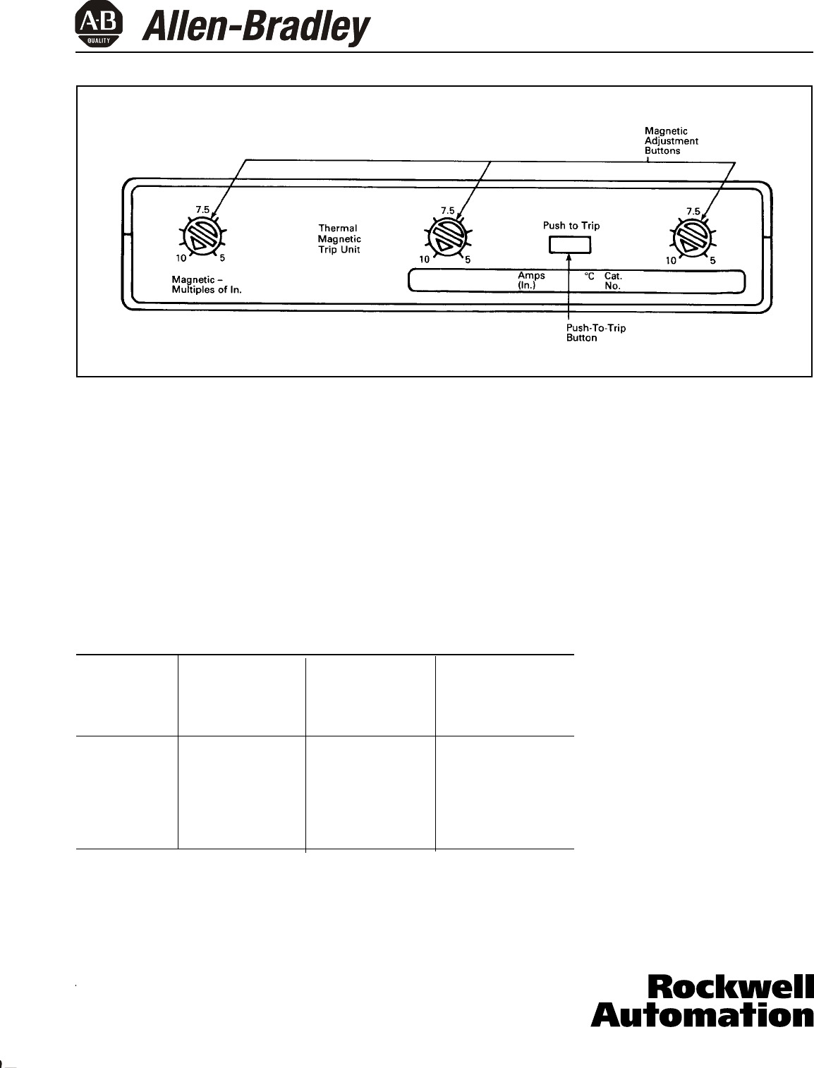 Installation and Operation for Thermal Magnetic Trip Units Manual
