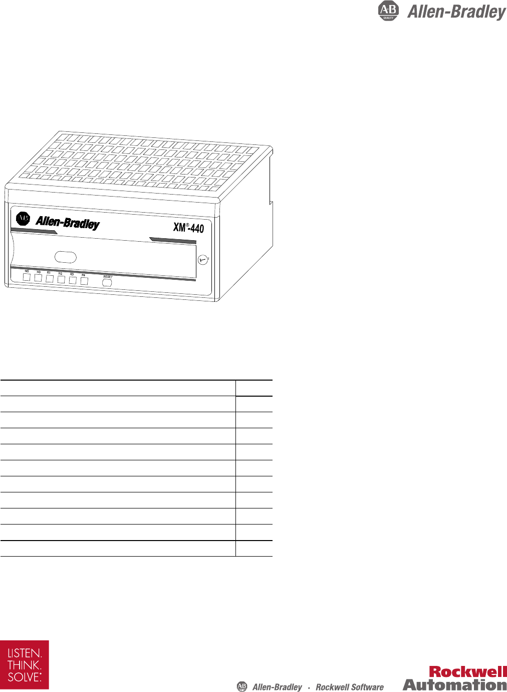Installation Instructions XM-440 Master Relay Module Catalog Number 1440-RMA00-04RC MASTER RELA Y 1440-RMA00-0 4RC Topic Page Environment and Enclosure 3 European Hazardous Location Approval 4 North American Hazardous Location Approval 5 Mount the Module 6 Module Indicators 7 Self-Test 8 Reset Switch 8 Install the XM Serial Configuration Utility Software 9 Specifications 10 Additional Resources 12