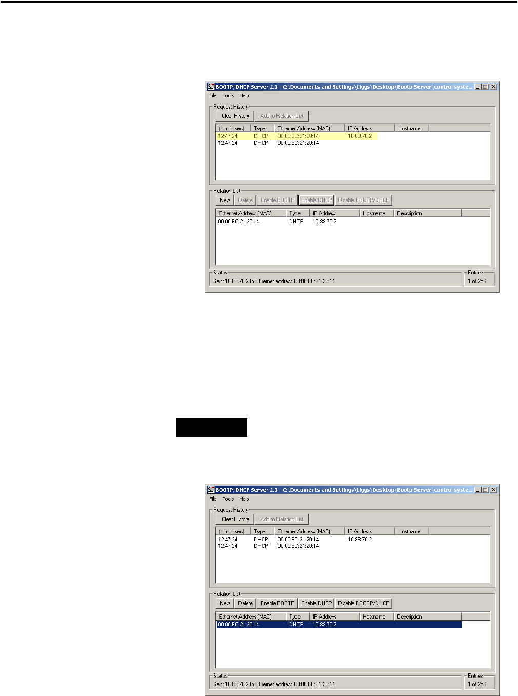 Relation List panel and click Disable BOOTP/DHCP. When power is