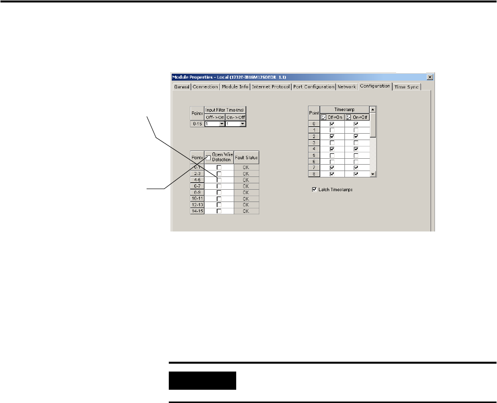 Use the Configuration tab in RSLogix 5000 to enable Open Wire Detection, as