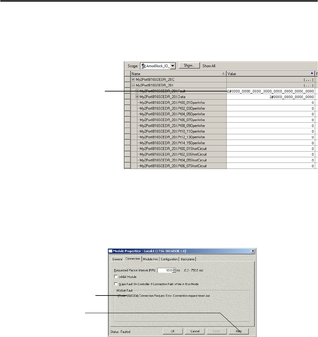 solutions, see Module Faults in the RSLogix 5000 online help.