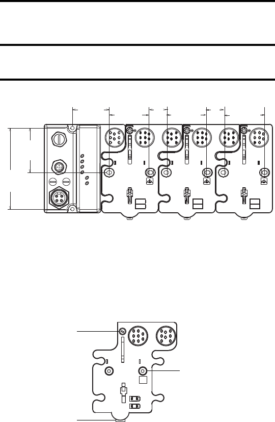 Mount the I/O base on a wall or panel, using the screw holes provided in the base.