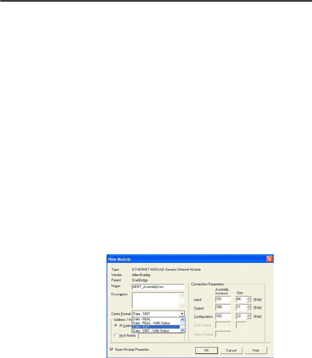 size (8 bytes) must be included in the Input Size. For RSLogix 5000 the Output